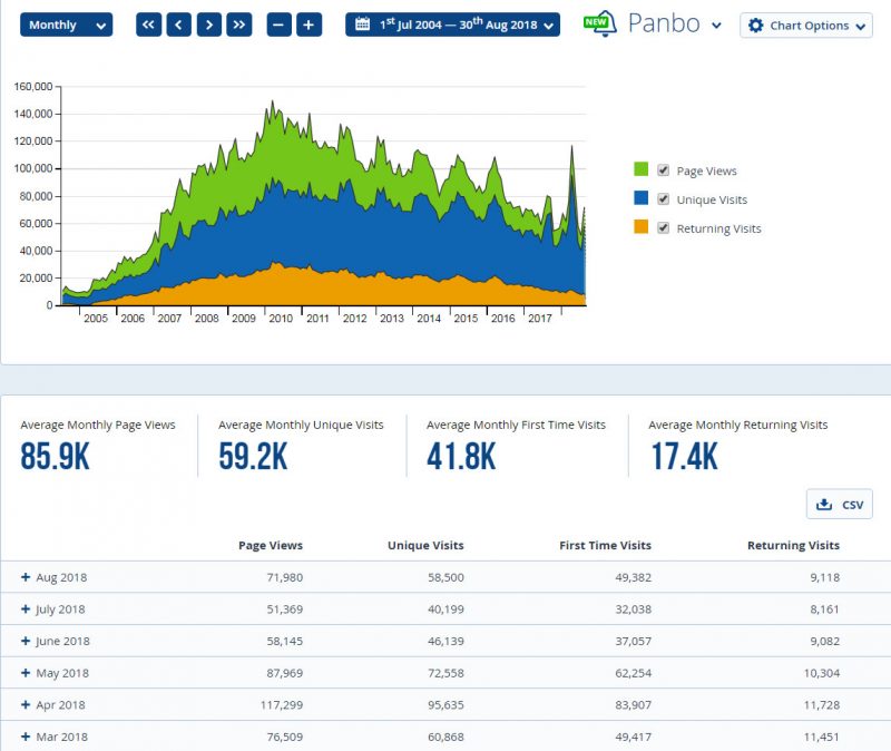 As tabulated by Statcounter (graph below), Panbo advertisers are getting the attention of about 60,000 unique visitors per month (and the numbers are growing again). Regular readers are a mix of marine electronics professionals and enthusiasts — the sort of folks who influence a lot of buying decisions — and “first time visitors” are often individuals who are researching a specific product or category with the intent to purchase. For more information, please contact the Ad Manager.