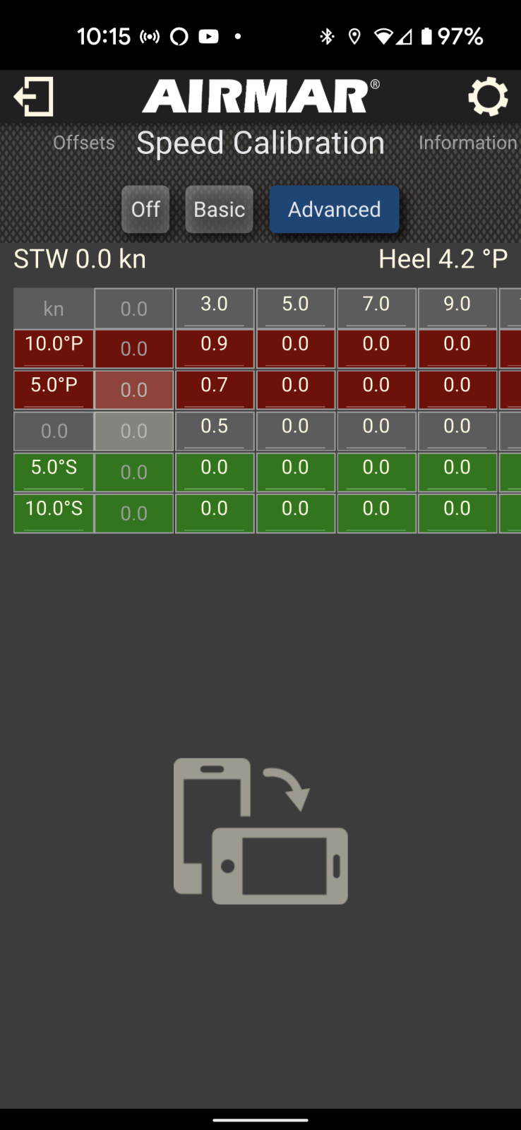 I wish Airmar had documented the app better. The “manual” is really just the quick start guide, which doesn’t cover the speed calibration modes. Calibrating on a sailboat I’ve found the automatic calibration confusing / poorly explained. Ex, do I need to do the basic *and* heel compensated calibration or does the heel compensated calibration completely replace all the values from the basic calibration?