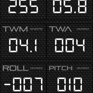 The screens above are from Calypso’s own AnemoTracker app, which is mainly meant to demonstrate what the Ultrasonic can do. At upper left, for instance, are controls that let you change the wind data refresh rate from the fairly standard 1 Hz (once per second) to the 4 or 10 Hz rate preferred on racing boats. This page is also where you go to enable the gyro/compass sensors that can deliver Heading, Pitch and Roll to those data screens.