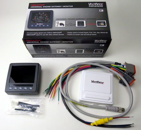 Veethree is a serious instrumentation company with significant engineering and manufacturing facilities in Florida and India (impressive corporate video here). The vast majority of their business is OEM, so while the ruggedly-built Engine Gateway Monitor (EGM) above is packaged as a retail product, you’re not apt to see one at a marine store and it’s even hard to find at Veethree (go to the bottom of this marine page). But my testing suggests that it could be useful on many boats, especially with a few of the firmware features coming to its big brother, the 800 EGM…